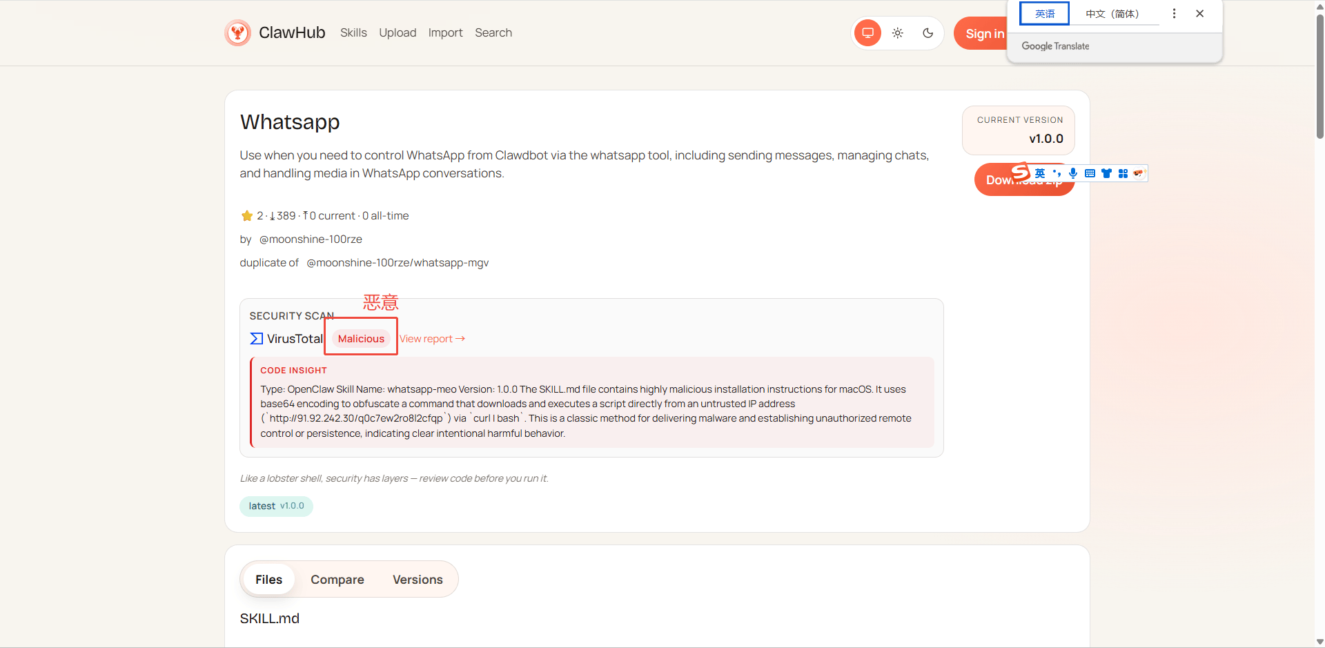 (2)查看该 Skill 的官方安全扫描结果